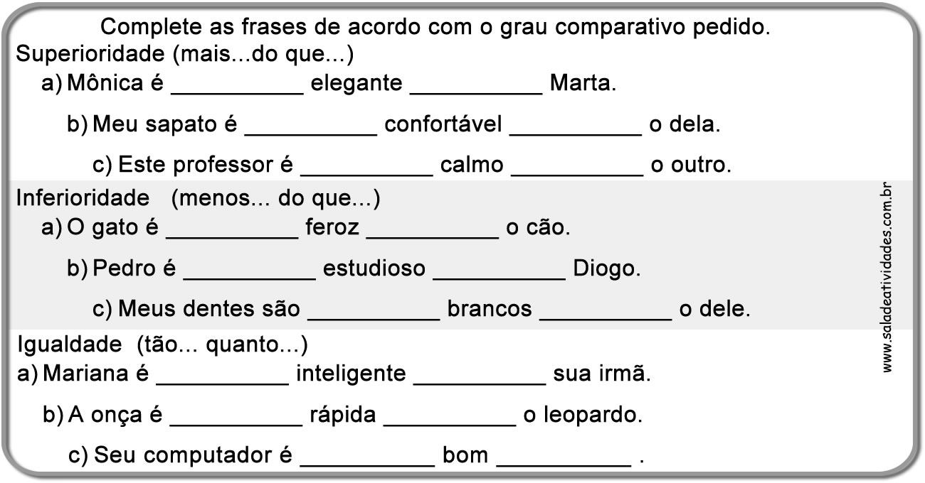Atividade Grau Do Adjetivo Comparativo E Superlativo 4 Ano - BINKEDU