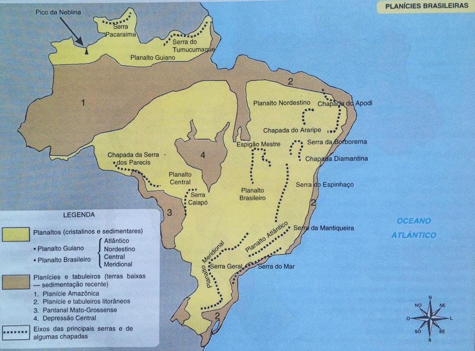 Descreva a formação do relevo brasileiro, considerando a atuação dos